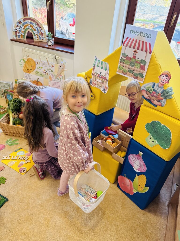 Na trhu v škôlke aj v meste si vyskúšali úlohu malých nakupujúcich 🧺 – vážili, počítali, porovnávali, ochutnávali a spoločne zistili, že aj „neobľúbená“ zelenina môže chutiť výborne 😋.